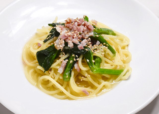 菜の花とベーコンの塩だれソース